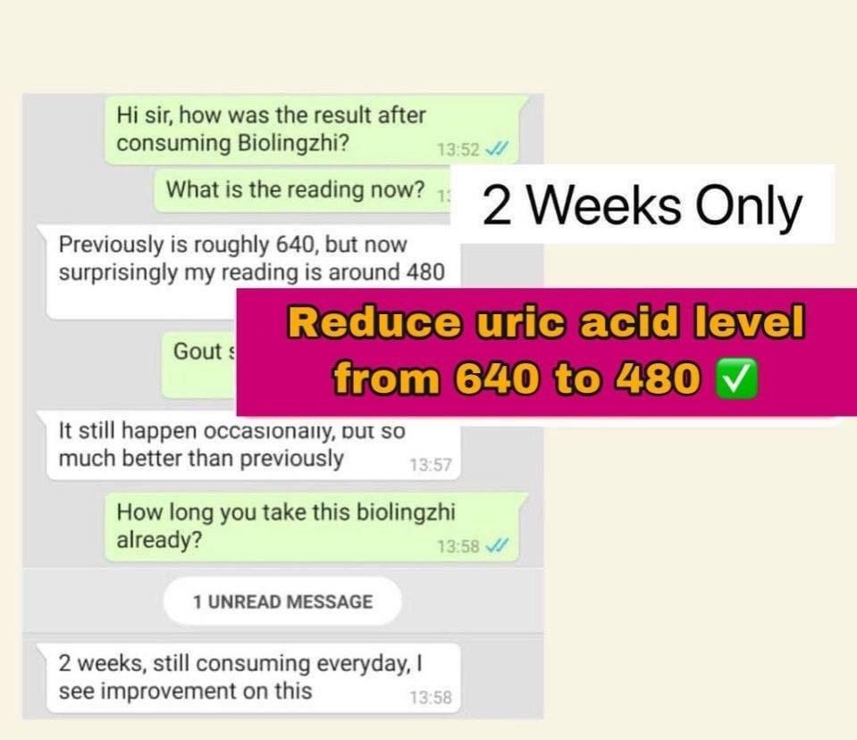 💥 𝐁𝐢𝐨-𝐋𝐢𝐧𝐠𝐙𝐡𝐢 helps with: 🔺Joint Pain/Shoulder Pain/Back Pain 🔺Uric Acid 🔺Gout 🔺Hypertension/High Blood Pressure 🔺Numbness/Tingling Hands and Feet 🔺Weak Kidneys and Liver 🔺Tired Working & Alcoholic 🔺Bubble Urine & Inconsistent UrinateRead more -